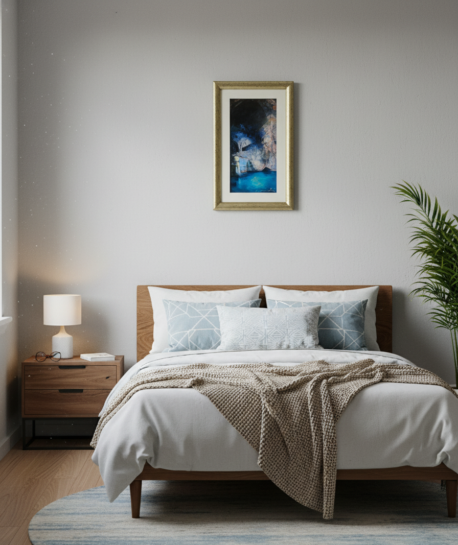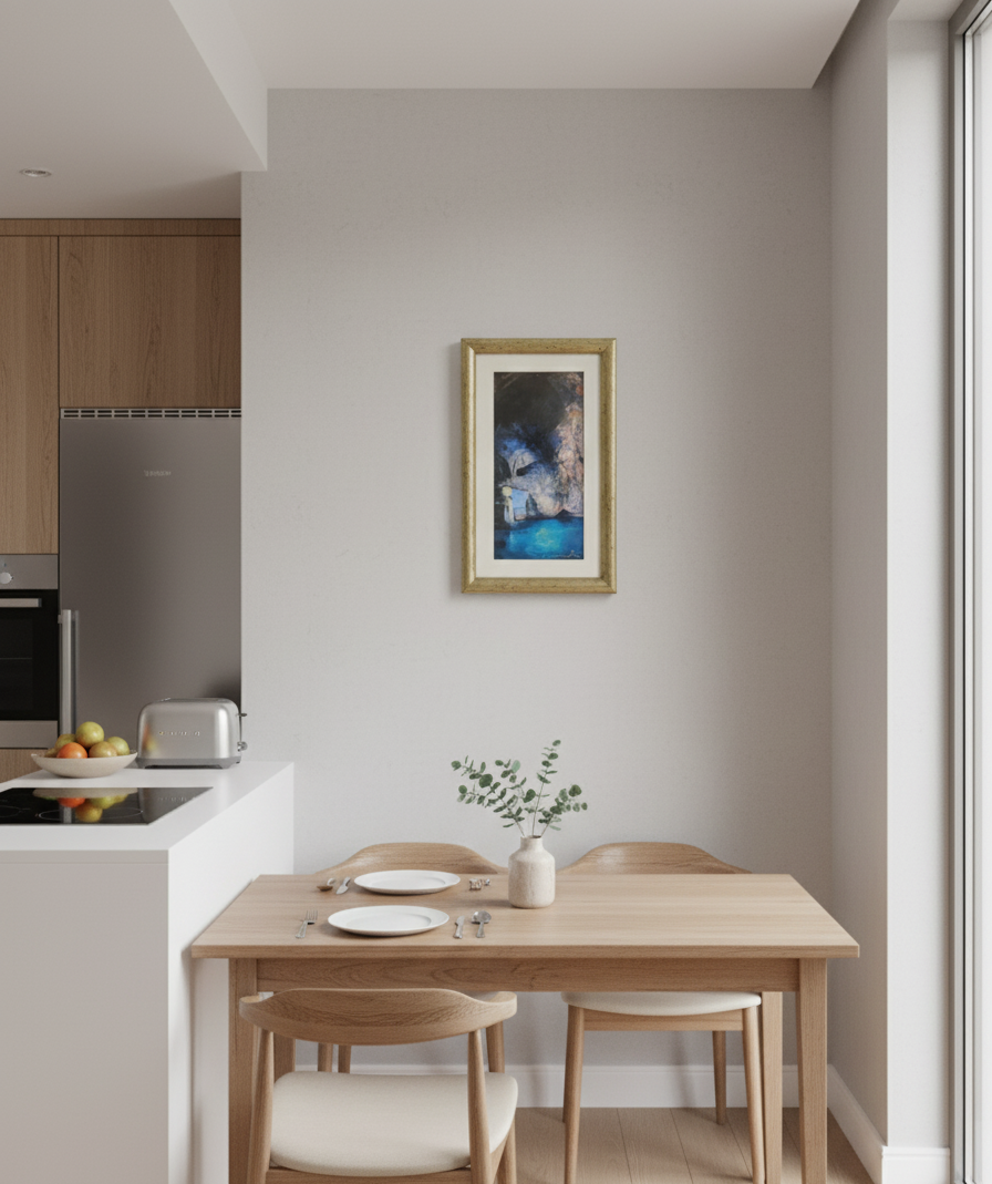 - Klaar om op te hangen, geen lijst nodig. (alleen 1 naald en hamer)